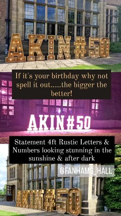 The Little Big Light Company specialises in offering a huge range of beautiful giant 4ft rustic light up numbers and letters for hire for all occasions.